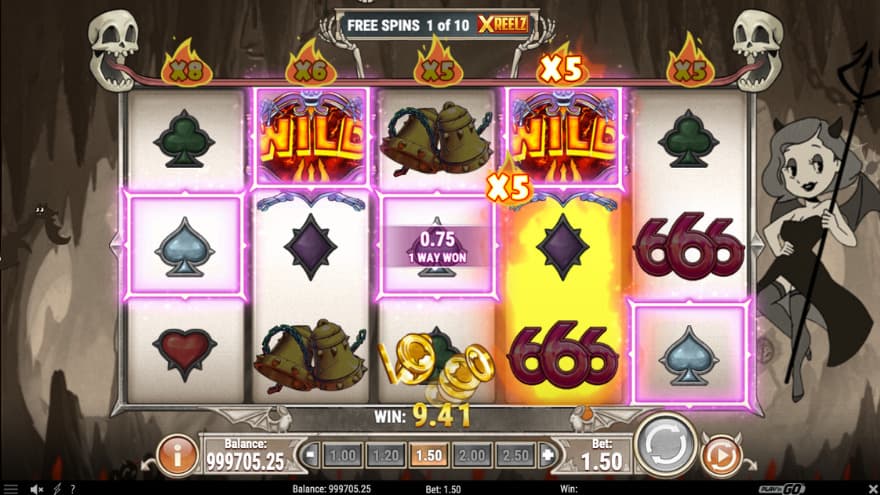 Hellfire Free Spins = Activated if you land 5 scatter symbols and the multipliers you can get are 8X, 9X and 25X.