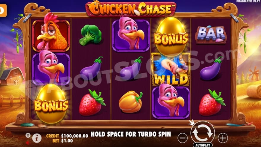 Chicken Chase from Pragmatic Play is a slot that is imbued with a tranquil presence, where the hens from time to time can lay eggs with some decent wins.