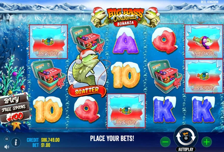 Christmas Big Bass Bonanza is a video slot from Reel Kingdom that features 5 reels, 3 rows and 10 paylines. You can choose between making a Min.bet of 0.10 and a Max.bet of 250. There is a high RTP of 96.71% by default, but this RTP can vary with different gaming operators and thus you should check out what applies before you start spinning the reels. It is a medium/high volatility, where you can win up to 2100X the bet.