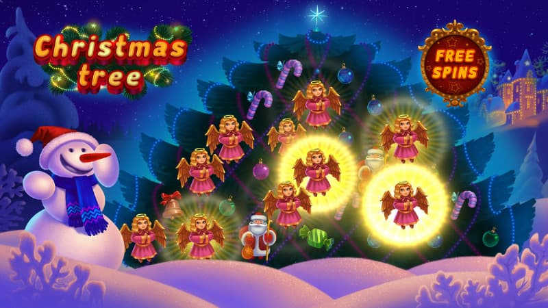 To the left of the Christmas tree, there is a snowman and completely randomly at the beginning of the spins, it can throw a snowball at any random symbol that has the value low or medium. What happens here is that the symbol which got hit and all the equal symbols turn into wilds during the current spin round.