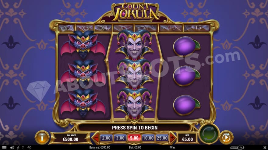 The game design is a Joker and Dracula theme, with a purple decorated wall in the background and a beautiful gold frame adorning the reels. You can play this slot on all the devices notepads, desktops and mobiles. You create a winning combination by landing 3 of the same symbol type on adjacent reels starting at the far left.