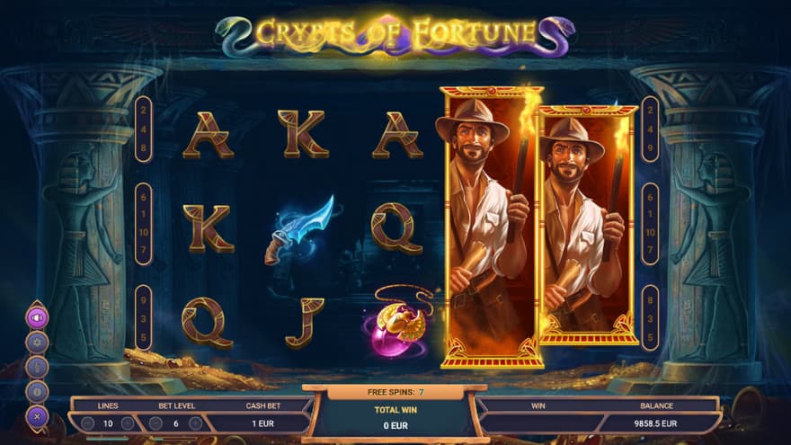 Crypts of Fortune is a slot whereby collecting scatters we can take part in two different Free Spins features, where very lucrative expanding symbols await.