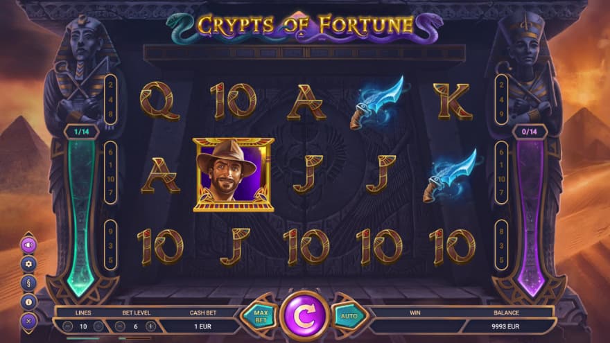 Crypts of Fortune is a video slot from TrueLab that has 5 reels, 3 rows and 10 paylines. One can choose between making a Min.bet of 0.10 and a Max.bet of 100. The game's RTP is 96.01% by default, but this can vary with different gaming operators, so you should check out what applies before you start spinning the reels. There is a medium volatility, where the lucky player can win up to 10000X the bet.