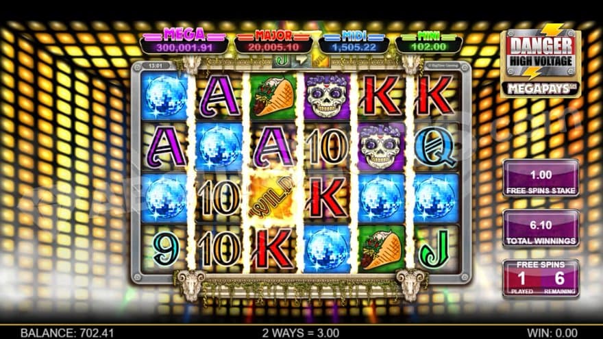 Anyone familiar with this game’s original version from 2017 will feel at home. The Megapays version looks almost the same but has the four Jackpots on display above the reels. We’re once again in a disco with color-changing walls and strobe lights beaming from the ceiling. The transparent reels let us see what is going on in the background. When we start spinning the reels, the same song comes on as in the first version. Your main objective is to start Electric Six’s hit song Danger High Voltage, which only turns on in the free spins. There are 4096 ways to win, and you make a win by landing the same symbol on at least 3 adjacent lines starting with the first reel to the left. Danger High Voltage Megaways is available on desktops, notepads, and mobile phones.