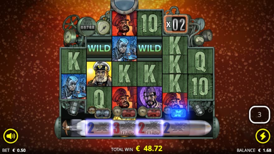 If you land 4 scatter symbols, the Wolf Pack Spins feature is activated where you get 8 spins. Here you will be able to launch the torpedo when 4 torpedo parts have been collected for it. Where you can collect xWays and xWays wild symbols for it. On reels 2 and 5, the xWays can land and the xWays wild can only land on reels 3 and 4. When you land the first symbol, its respective symbol type will give 2 of it.
