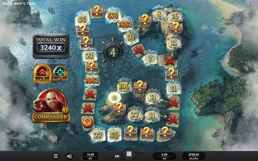 Dead Man's Trail is a slot that allows us to take part in an adventure out at sea among pirates, where this stormy sea can show us the way to the Trail Bonus which can give huge winnings.