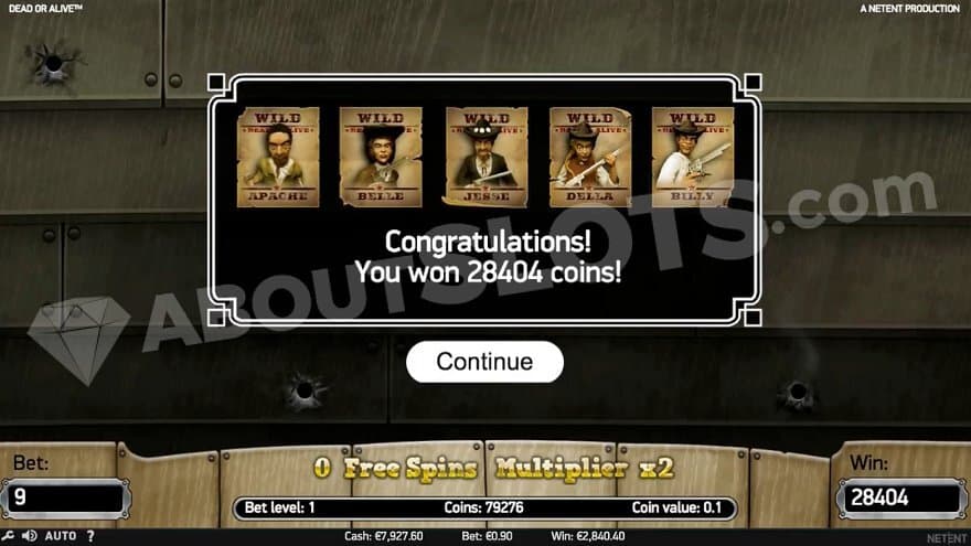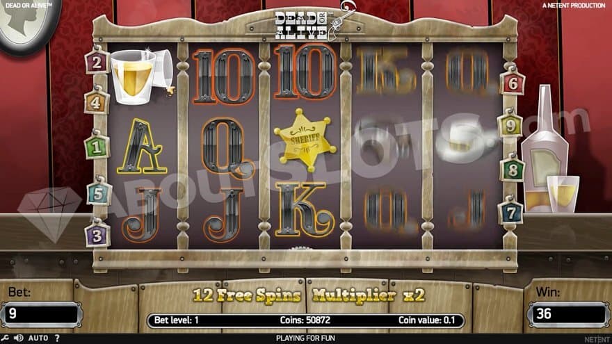 Dead or Alive from NetEnt is a classic casino slot in the Wild West where wild outlaws stick to the reels and create wins up to 12000X the bet.