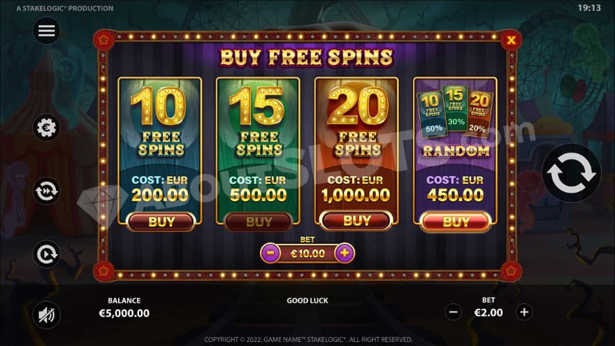 You can use the bonus buy option if you want to take advantage of the free spins’ bonus game right away. You can choose between the following options: