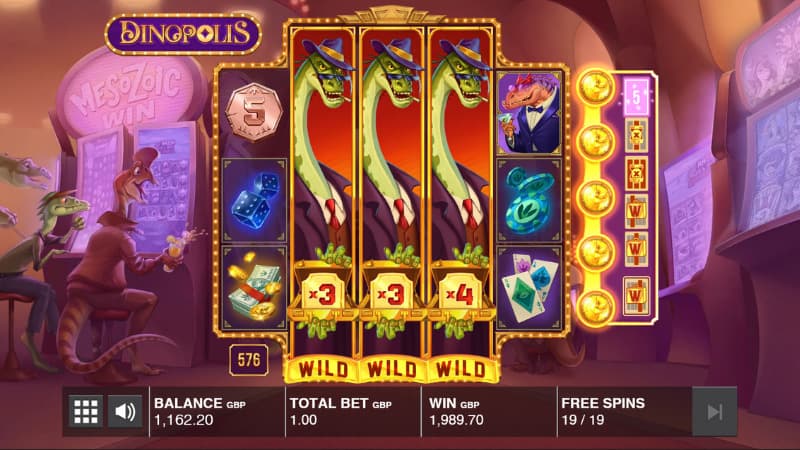 In Dinopolis, you can manage to scoop up a maximum win of 50000X. Where this becomes possible with the help from the features Wild Symbol, Wild Multipliers, Dino Coins and Dino Bonus.