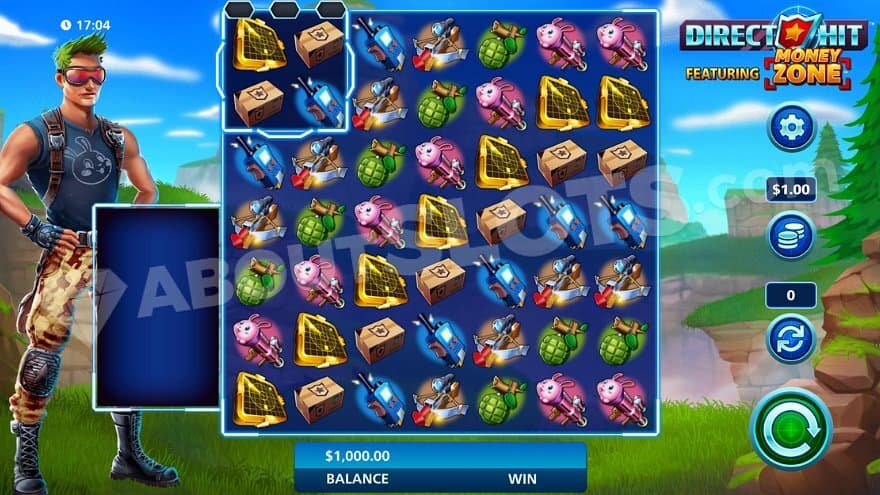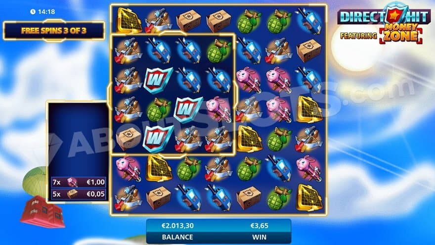 The graphics look like they’re taken straight from a kids’ cartoon with a green-haired soldier standing to the left of the reels. He’s holding his hands on his hips and makes salutes and other movements on wins and features. He is standing in an open landscape with green grass, hills, and trees. The 7X7 grid has a blue background, and there’s a smaller blue square between the reels and the soldier. That square displays all the cascading wins in a spin by telling how many symbols are involved and how much each combination pays. The game’s logo and buttons to make a bet and open the paytable are to the right of the reels. At the bottom of the slot is where you can see your balance. Within the grid is a Money Zone that changes position and size all the time, from 2X2 to 6X6. The Money Zone is crucial for activating the Free Spins. To make a win you’ll need to land at least 5 of the same symbols in a cluster, connecting either horizontally or vertically. The game is playable on all devices such as desktop, notepad and mobile phone.