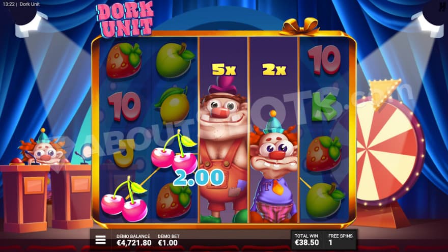 If you land 3 scatter symbols at the same time, the Dork Spins feature is activated and then you are welcomed with 10 free spins. During these spins, the scatter symbols can only land on the reels 2, 3 and 4. When one lands, it will turn into an expanded wild and stay on the reel during the remaining spins. On each new spin, one of the three dorks will land with a random multiplier. If you create a win with several multiplier wilds, these multipliers will be added together before being applied to the win. The different dorks can give the following multipliers when they land: