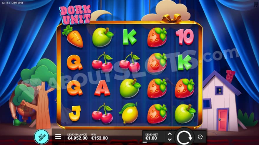 Dork Unit is a video slot from Hacksaw Gaming that features 5 reels, 4 rows and 16 paylines. You can choose between making a Min.bet of 0.10 and a Max.bet of 100. The game has been created with several different RTPs, with an RTP of 96.24% by default. However, gaming operators can also choose from lower options such as 94.30%, 92.18% and 88.22%. Dork Unit has a medium volatility and a hit frequency of 30.96%, where you can win up to 10000X the bet.