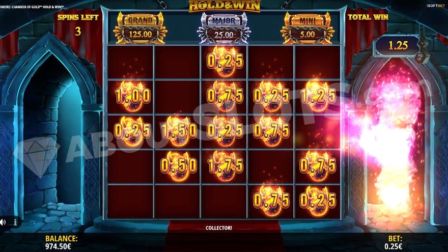 Dragonfire: Chamber of Gold Hold&Win has a respins feature where the lucky player can collect all cash symbols and start over on an empty grid.