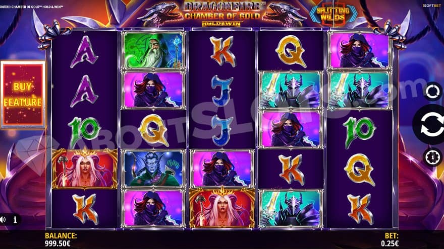 Not only the dragon hangs out in the chambers of gold. The attentive player will also find the features Splitting Wild Symbol, Walking Wild Symbol, Splitting Wild Respins, Expanding Wild, Scatter Symbol, Hold&Win Respins, and Bonus Buy.