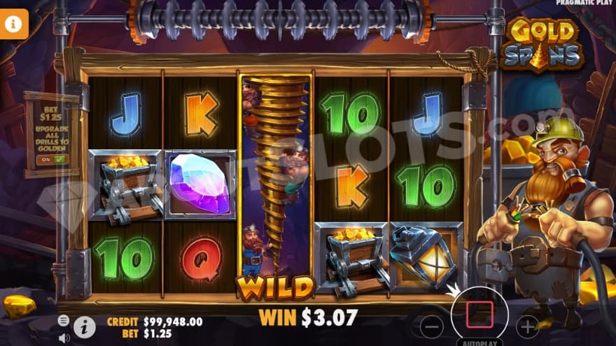 Within this mining adventure among gold loving dwarfs, we have a couple of great features to help us in the hunt for the bigger wins. The features are Wild Symbols, Drill, Spin Modifiers, Gold Spins and Ante Bet.