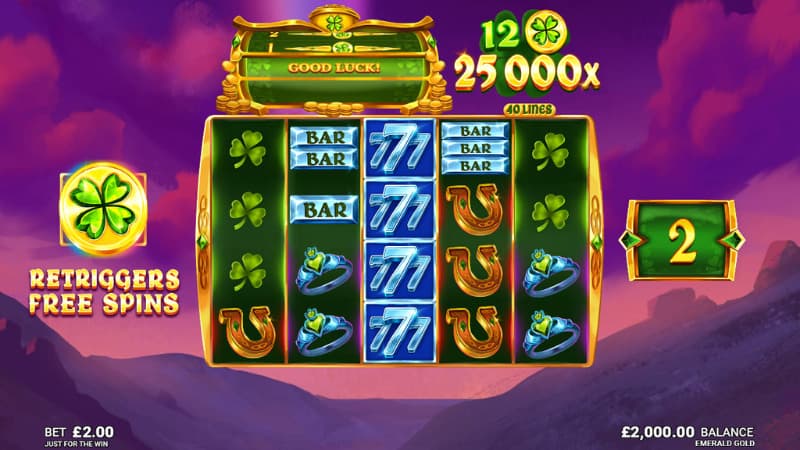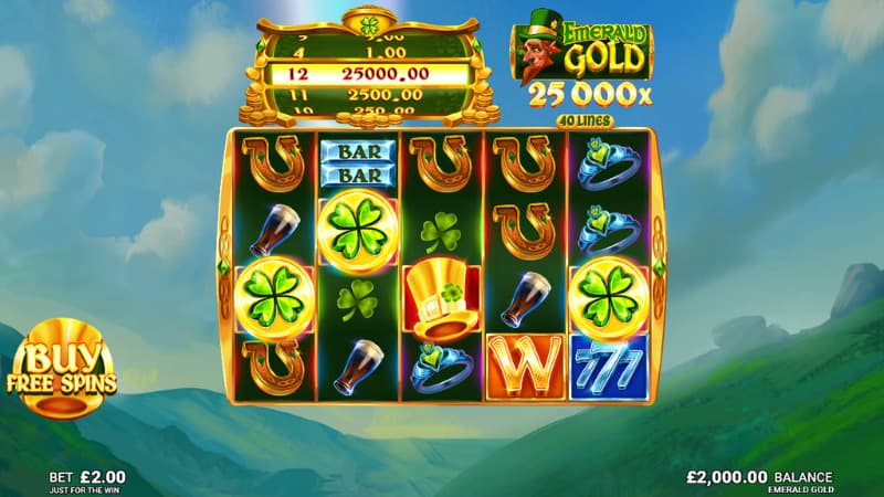 Emerald Gold is a slot from Just For The Win that has 5 reels, 4 rows and 40 paylines. Where with the help of the magic features that the leprechaun has, we can take part in a win of up to 25000X the bet. These features that can help with this are wild symbols, Cash prizes and free spins. By collecting four-leaf clover symbols which are the game's scatter symbols, 4 or more of them directly give Cash prizes. If you manage to get 12 of these scatter symbols, you will receive the game's maximum win of 25000X the bet. This maximum win is easier to reach through the free spins feature which allows you to collect scatter during multiple spins. The energetic Irish music really kickstarts the spins and once you get started, you eagerly wait for the scatters to land. The features are intertwined in a very wonderful way in this slot and they make the spins in both the base game and in the free spins feature very entertaining. Are you ready to pick four-leaf clovers along with the leprechaun?