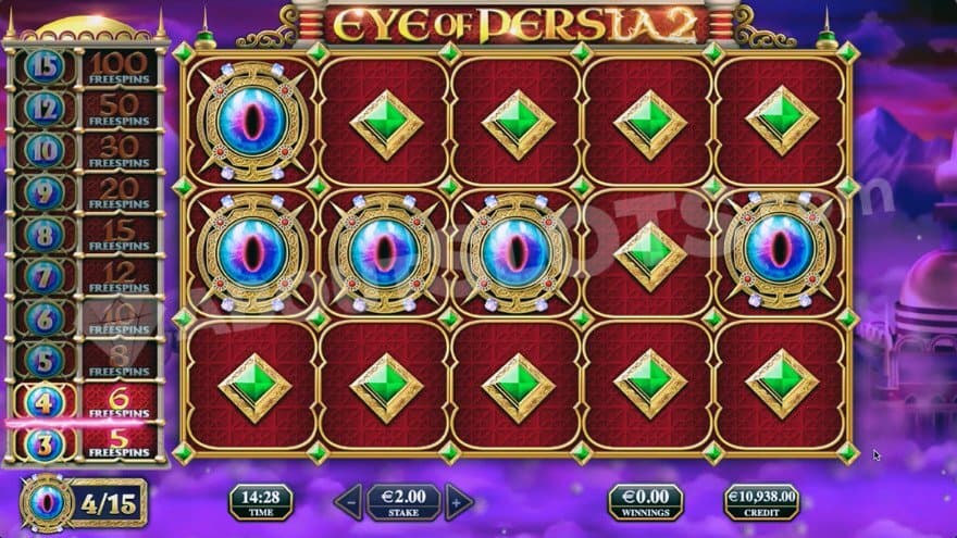 Eye of Persia 2 is a highly volatile slot where you can win an amazing 100 free spins with a 100X multiplier.
