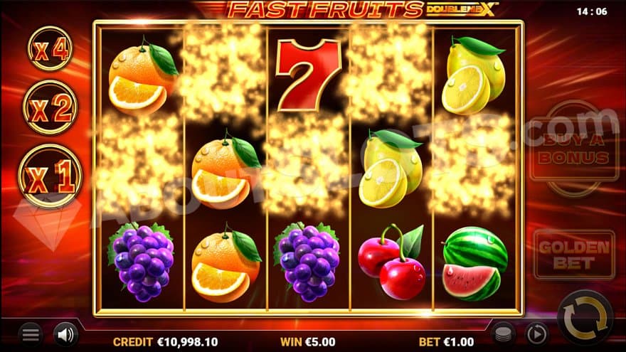 When these fast fruits start spinning, look out for the features Cascading Wins, Doublemax Multiplier, Wild Symbols, Golden Bet, Free Spins Gamble, Free Spins, and Bonus Buy.