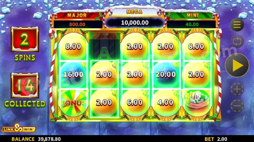 Baubles can land on reels 1-4. These have different prize values between 1x-400x attached to them. If you land a Trigger Symbol at the 5th reel, the prizes are collected.