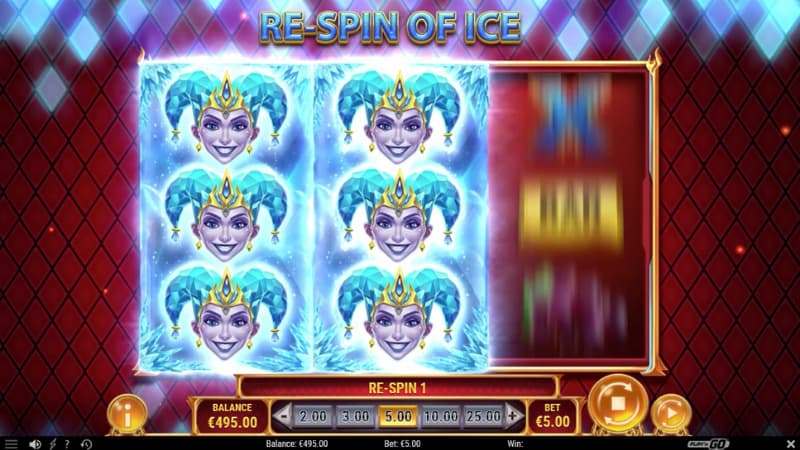 If you spin the reels and the Ice Jokers land but do not create a winning combination, then you will get to take part in the Re-Spin of Ice. The reels that didn’t have Ice Jokers will Re-Spin and the reels that have Ice Jokers on them will expand to be completely covered by Ice Jokers.