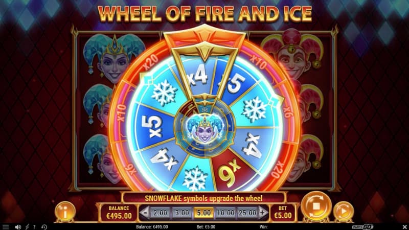 If you landed 2 stacks of the same symbols and an Ice Joker, then this Ice Joker will expand to cover the reel and then trigger the wheel feature as well. Depending on how many reels you have with Ice Jokers upon activation will result in you having to start on different reels. Depending on whether you have 1, 2 or 3 stacks of Ice Jokers, you will start on Wheel 2, Wheel 3 and Wheel 4 respectively.