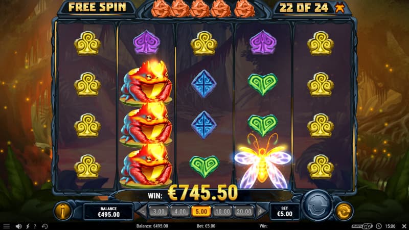 Fire Toad is a slot from Play'n GO that has 5 reels, 4 rows and 1024 paylines. Where there is Medium/High volatility, and the possible maximum win is 5000X the bet. When you spin the reels, you can take part in features such as wild symbols, free spins and symbol upgrades. These slightly simpler features are intertwined in a very smooth way and during the bonus game it can be really entertaining spins. Since the toad symbols are upgraded and have the potential to be upgraded to show only the highest paying toads of the 5 that exist. With a chance at getting unlimited retriggers, the visit to this tropical place will be very exciting. It is usually said that you should not touch toads as it burns their skin, but this time they can burn you so be careful during your visit.