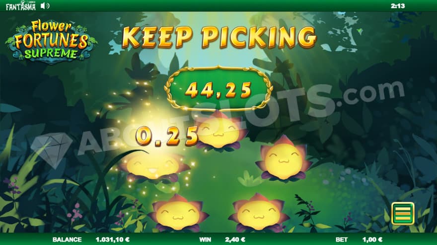 Once you have reached level 3, you can land bonus scatter symbols. When you land 3 or more of these at the same time, the bonus game feature is activated. Then 5 flowers will appear, where you will receive a random number of picks. These are worth between 0.25X to 100X each and you then receive the total amount that you have picked.