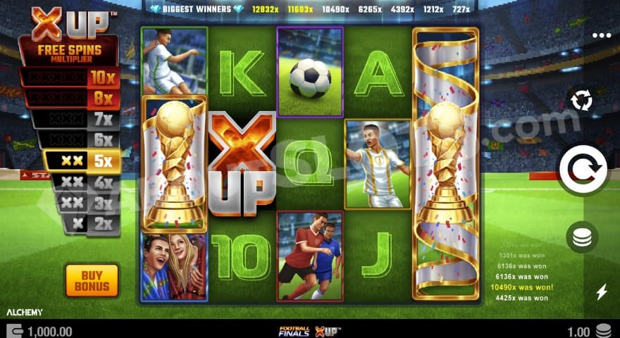 Football Finals X UP by Alchemy Gaming gets you excited for the up & coming World Cup with its X UP feature and a potential max win of 10.000x!