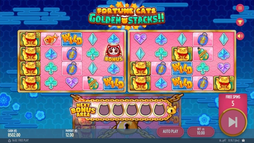 Fortune Cats: Golden Stacks lets us take part in a Japan-inspired gaming adventure, where the fortune-bringing cats occasionally generate bigger wins.