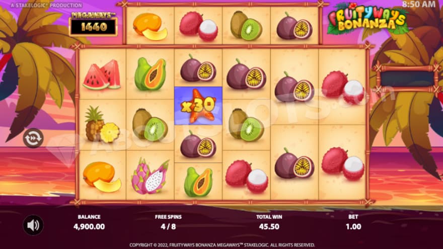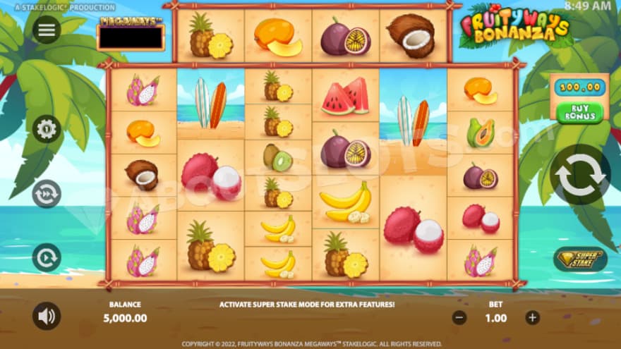 Fruityways Bonanza Megaways is a new casino slot from Stakelogic that takes us to a tropical paradise island. This is a reskin to their previous version Candyways Bonanza 2 Megaways, where the features and stats remains almost the same, but where a tropical theme has been applied. It's certainly a soothing theme that will be extra attractive to take advantage of now since many are heading towards autumn and colder times. Over the years, many tropical slots have been created, where we recently took part of Tropical Bonanza which at times delivered entertaining spins. Let's visit this slot and find out what you can expect to see during the spins.