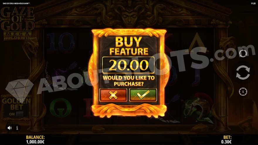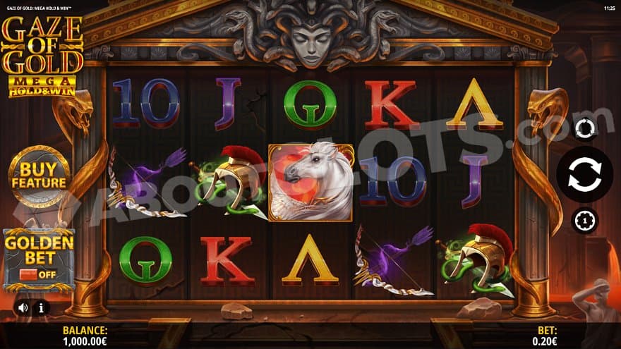 Turning on the Golden Bet increases your chances of activating Gorgon’s Gaze Modifier and the Mega Hold & Win feature. It costs you 50% of your base bet.