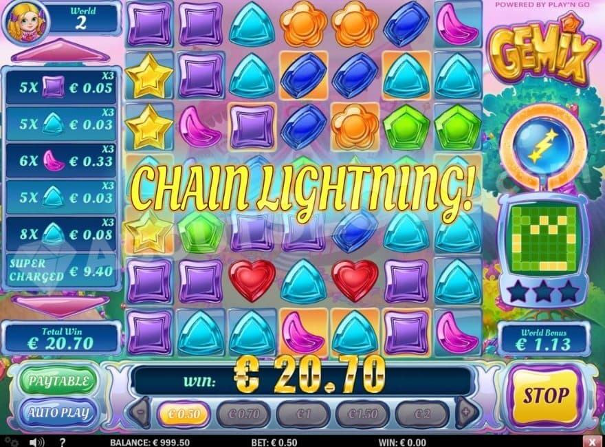 Gemix is a well-built game with a nice story giving some extra fulfilment every time we advance to the next world. It comes with significant variations considering the four different features that can be activated by the crystal charge meter. That tool is also visualized in a great way on the slot, making the gaming experience something extra. The three different worlds and making certain wins to advance between them is another excellent idea that enhances the gaming experience. The fact that every world has its own wild symbol also spices up the variety of the story. The only thing we can think about missing is some sort of free spins feature – it would have been awesome if Play’n GO gave us that too.