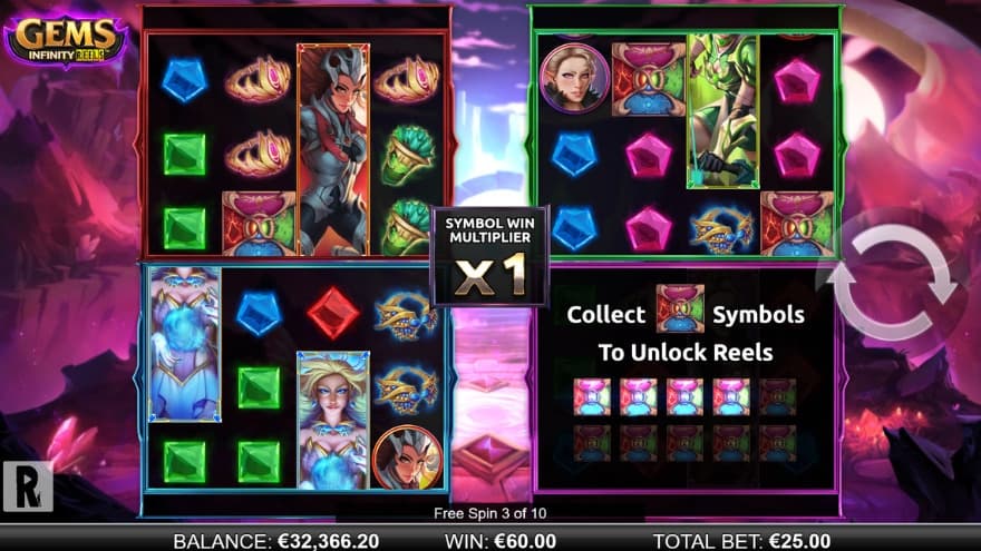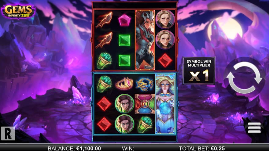 Gems Infinity Reels is a video slot from ReelPlay that has 2 mini slots, where they both have 4 reels and 3 rows. Because it is an Infinity Reels mechanic, these reels can increase infinitely when winning combinations are created. You can choose between making a Min.bet of 0.25 and a Max.bet of 100. It is an RTP that is around the average, where this slot has an RTP of 96.26% and a medium volatility. In this adventure among glittering gems, you can win up to 2267X the bet.