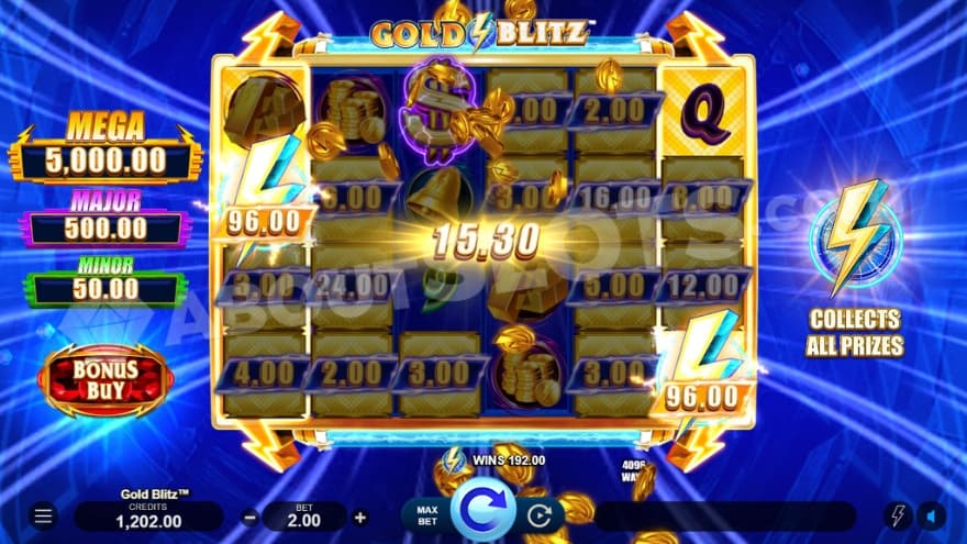 An epic slot experience requires engaging mechanics, and Gold Blitz has plenty. The features are Wild Symbol, Scatter Symbol, Collect Symbol, Cash & Jackpot Prizes, Free Spins, Gold Blitz, and Bonus Buy.