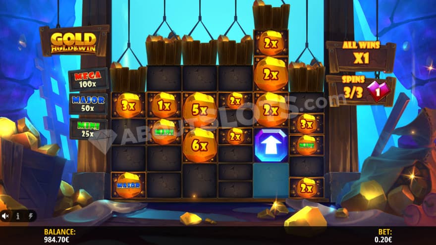 You can activate the Gold Bet by paying 50% extra of your bet size. Once the Gold Bet is activated, you will be guaranteed to have at least 10,000 ways to win during the spins and the Mining Modifiers and Hold & Win Respins feature will be activated more frequently. In addition, you can win up to 28821X the bet when you have the Gold Bet activated.