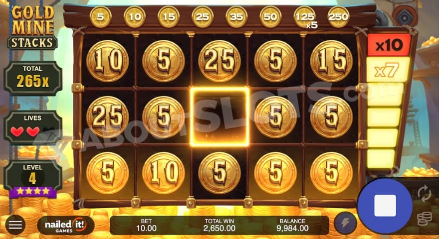 Coins with various values are used to trigger the Gold Mine Stacks Bonus. Landing 3 or more of these triggers the feature.