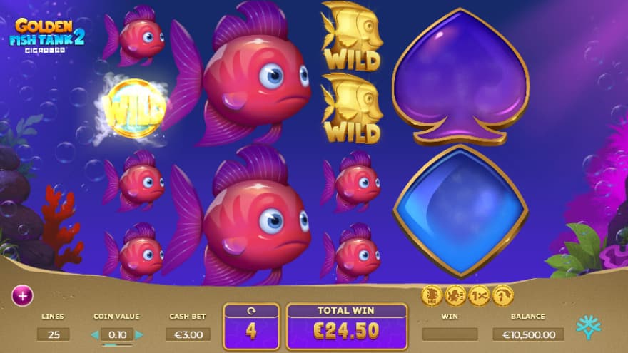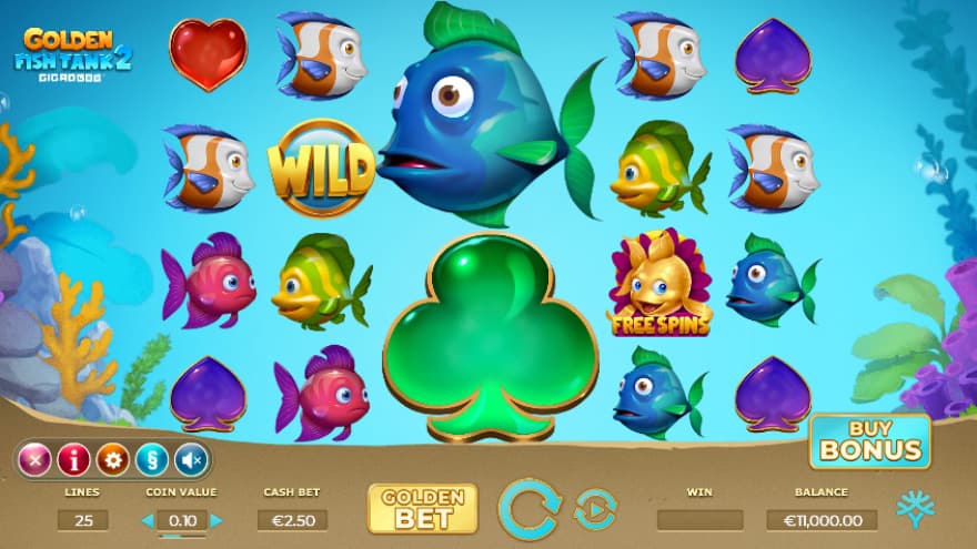 In this fascinating game adventure among colorful fishes, we also have a couple of wonderful features that we can witness. The features are Wild Symbol, Gigablox, Free Spins, Golden Bet, Treasure Chest, Free Spins Gamble and Bonus Buy.