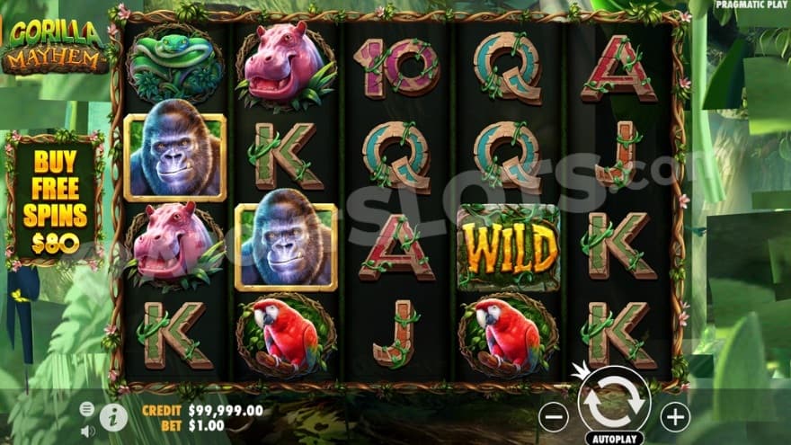 Gorilla Mayhem from Pragmatic Play takes the player on a journey to the African jungle where beautifully animated wild animals can help make big wins.