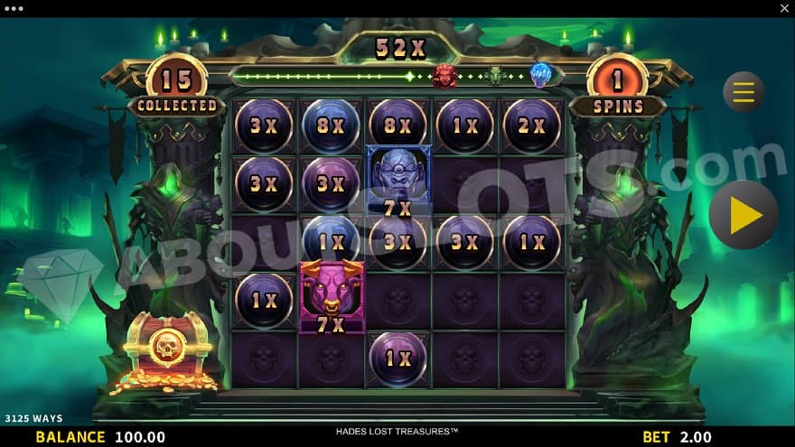 Hades Lost Treasures is a casino slot from Gold Coin Studios. In Greek mythology, Hades is the ruler of the underworld, a realm where the souls of the dead reside. He is often depicted as stern and unyielding, with a helm that renders him invisible. But he's not the only character. His wife, Persephone, is a central figure known as the queen of the dead and the goddess of spring. Charon, the ferryman, transports souls across the river Styx to the underworld for a fee, and Cerberus, the three-headed dog, guards the gates of the underworld, preventing the living from entering and the dead from leaving without permission. He is actually one of the higher-paying symbols in this game and one of four that can trigger Monster Features in the Link&Win Feature.