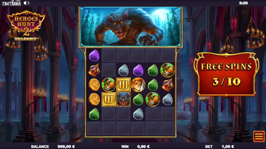 There are three different heroes with associated features that you can take part of. At the start of the game, you can choose one of these heroes that you want to use, where the other two will start with 0 EXP. You will then be able to land chest symbols on reel 6 during the base game and when it lands you will randomly receive 1 of 4 rewards. Where you can get 1 Archer EXP, 1 Wizard EXP, 1 Warrior EXP or 10 Werewolf free spins.