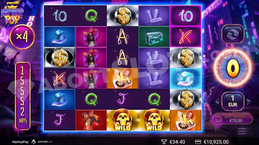 HipHopPop is a video slot from Avatar UX with 5 reels and 3 starting rows that can grow up to 6 in the base game and 9 in the free spins. The game starts with 486 ways to win, and expanding the grid to the max will give you a whopping 118098 ways to win. The Min.bet is 0.2, and the Max.bet is 40. The game’s default RTP is 96.05%, and there’s also another version with 94%. Money comes and goes quickly in this highly volatile game where the max win is 50000X the bet.