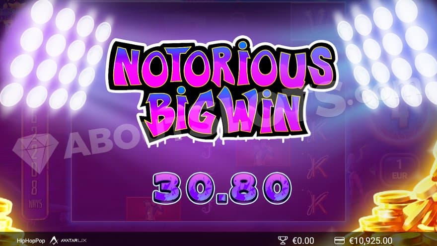 What is the max win in the slot HipHopPop?