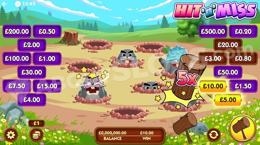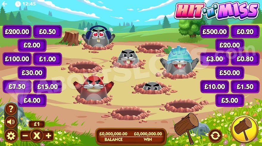 Hit ‘N’ Miss from SG Digital is a game where the player gets to hit moles in the head with a wooden club – making wins up to 500X the bet.
