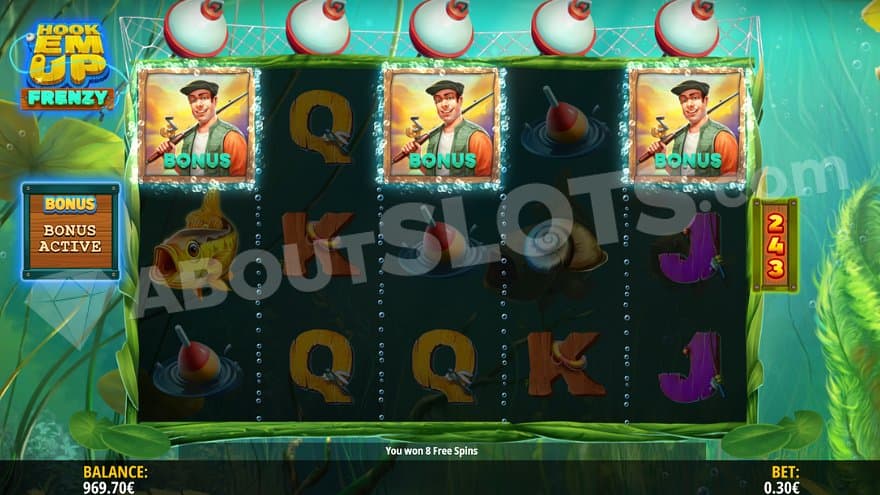 Hook 'Em Up Frenzy from iSoftBet is a fishing story with an incredible win multiplier that can grow up to 243X in the free spins.