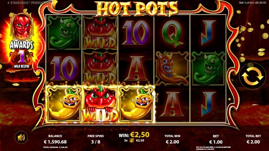 Hot Pots is a slot where, along with some chillies down in hell, we can enjoy spins where a very lucrative wild booster feature can generate lovely winning combinations.