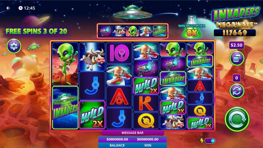 Invaders Megaways is a game where we get to meet cow kidnapping aliens, who show us a slot where very entertaining special Wilds are randomly created.