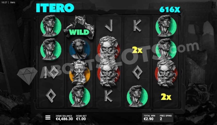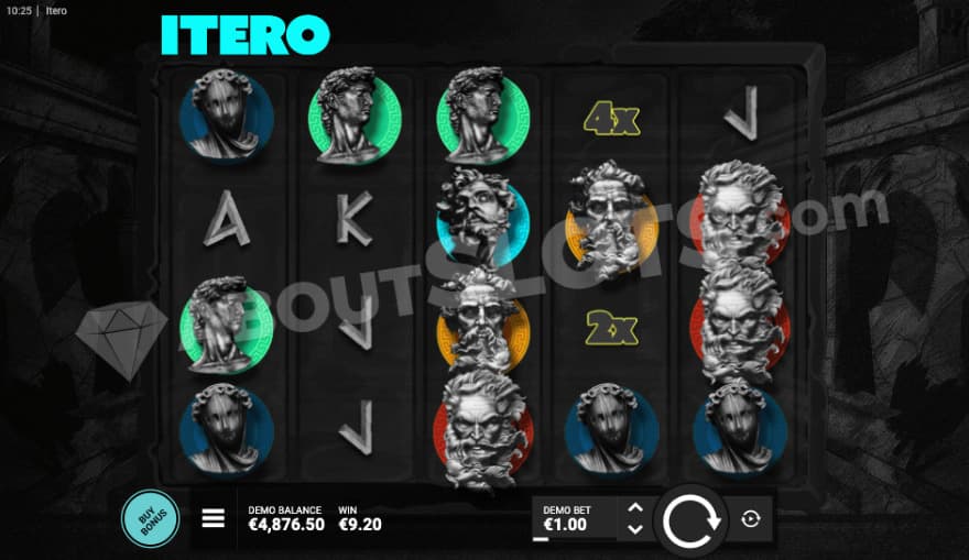 Itero is a new casino slot from Hacksaw Gaming that takes us on a Rome-inspired gaming adventure. We have ended up at a slightly darker and creepy place among grey statues, reminiscent of the feeling that their recently released Hand of Anubis also gave off. It's a slot that's packed with a few but interesting features that can brighten up this otherwise very dark place. Their Echospins mechanic is the main focus, with each respin being a copy of the triggering spin. Let's visit this slot and find out what you can expect to see during the spins.