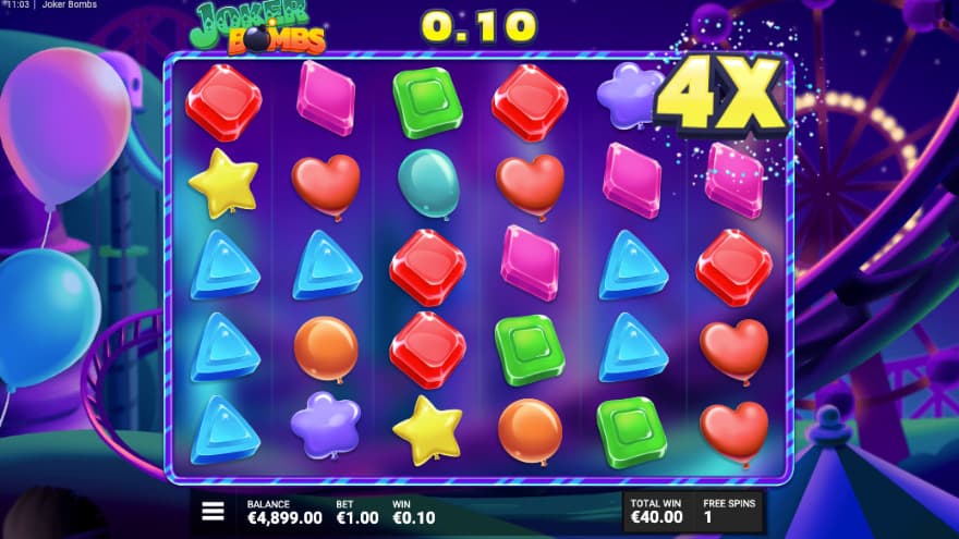 Joker Bombs is a slot where a scatter-win based mechanic is applied and together with multiplier wilds, the visit on this amusement park can be entertaining.