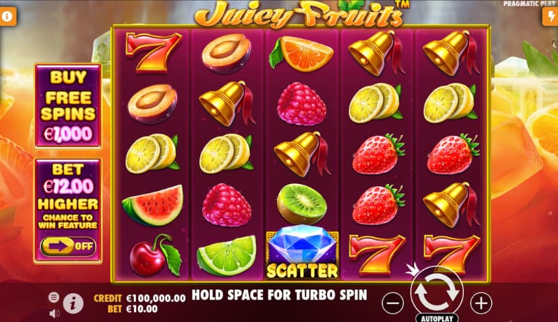 With Juicy Fruits, Pragmatic Play here comes with a slot that gives us a hefty Vitamin C dose. You play on a slot that has 5 reels, 5 rows and 50 paylines. You can choose between making a Min.bet of 0.25 and a Max.bet of 150. Juicy Fruits has an RTP of 96.52% and a high volatility. With the help of the wild symbol and free spins feature, you can manage to scoop up a maximum win of 5000X the bet.