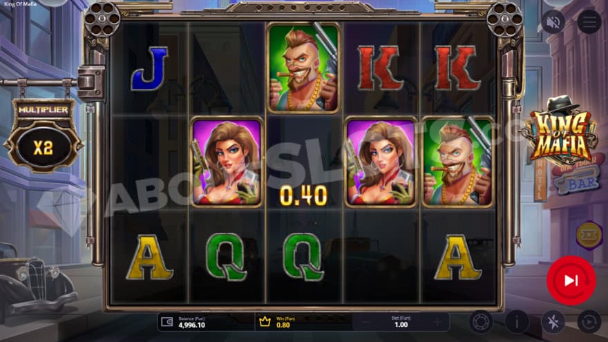 The game’s design is based on an old-school Mafia theme filled with symbols associated with Wise Guys. There have been many movies about the Mafia, but the most famous has to be , directed by . The reels in this game are in the middle of the screen, and you’ll see a city street with old cars and saloons in the background. The spin and Bonus Buy buttons are positioned to the right of the reels, and the remaining buttons are positioned below. You can play King of Mafia on all mobile devices, desktops, and notepads. You create a winning combination by landing 3 or more of the same symbol types on adjacent reels starting at the leftmost reel.